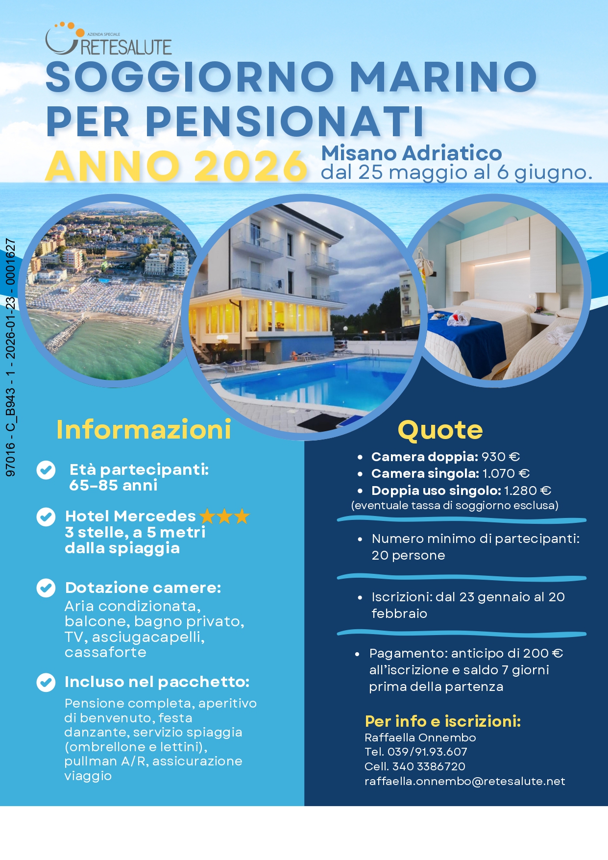 Scopri tutte le informazioni e le modalità di iscrizione al soggiorno marino per pensionati nell'anno 2026.
