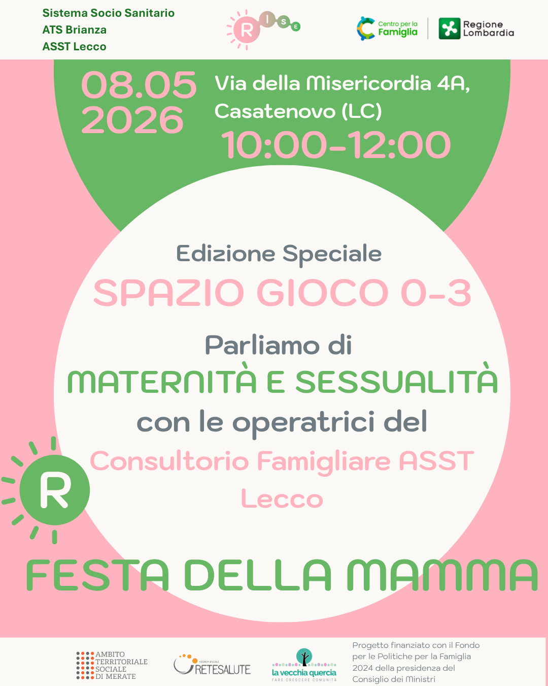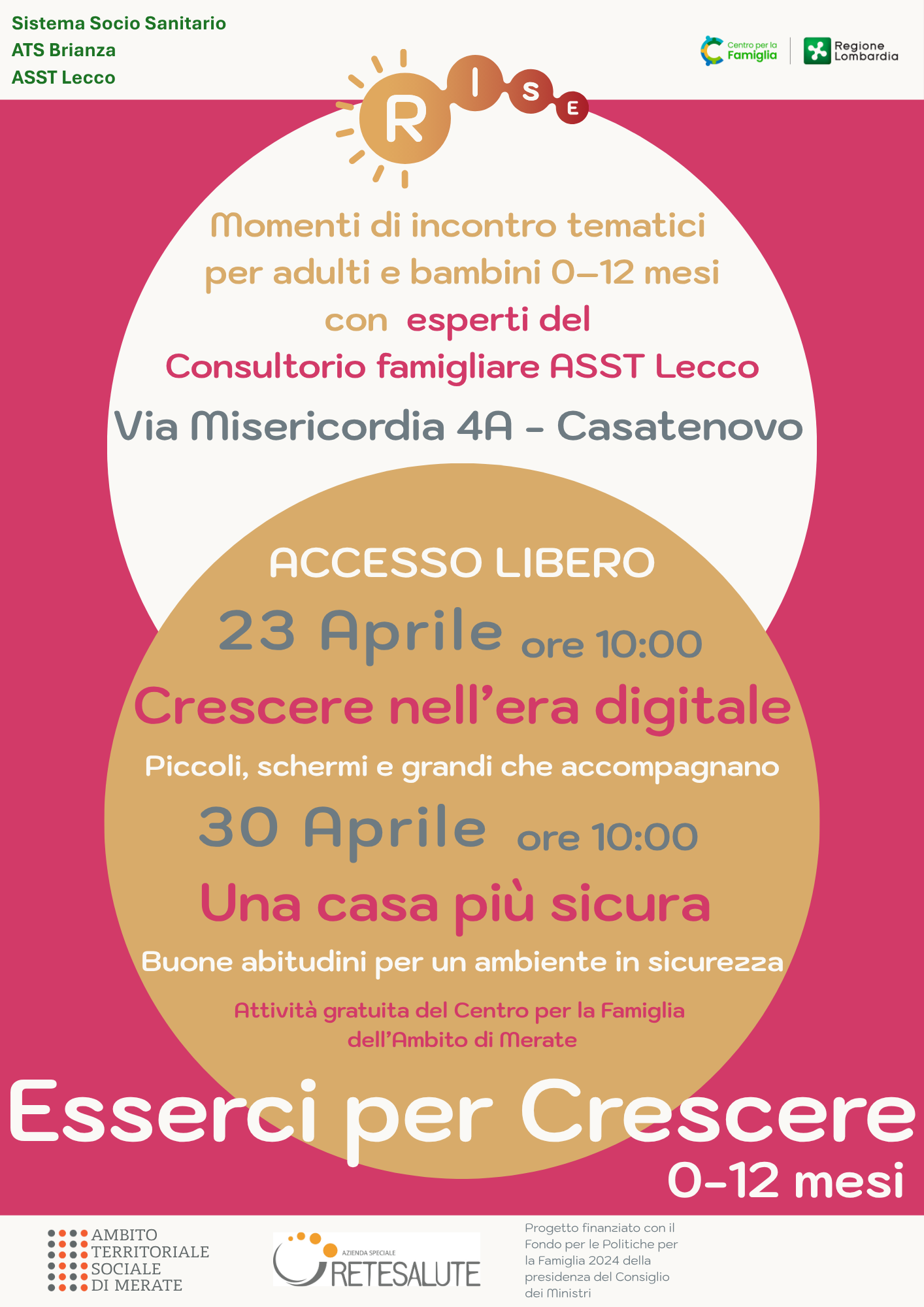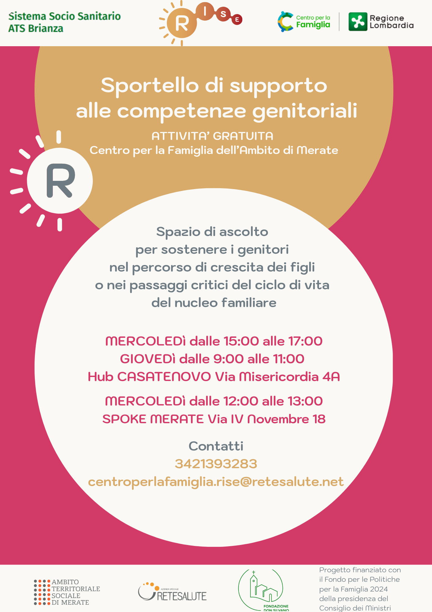Contatti: tel. 3421393283 / centroperlafamiglia.rise@retesalute.net / rise.centroperlafamigliamerate