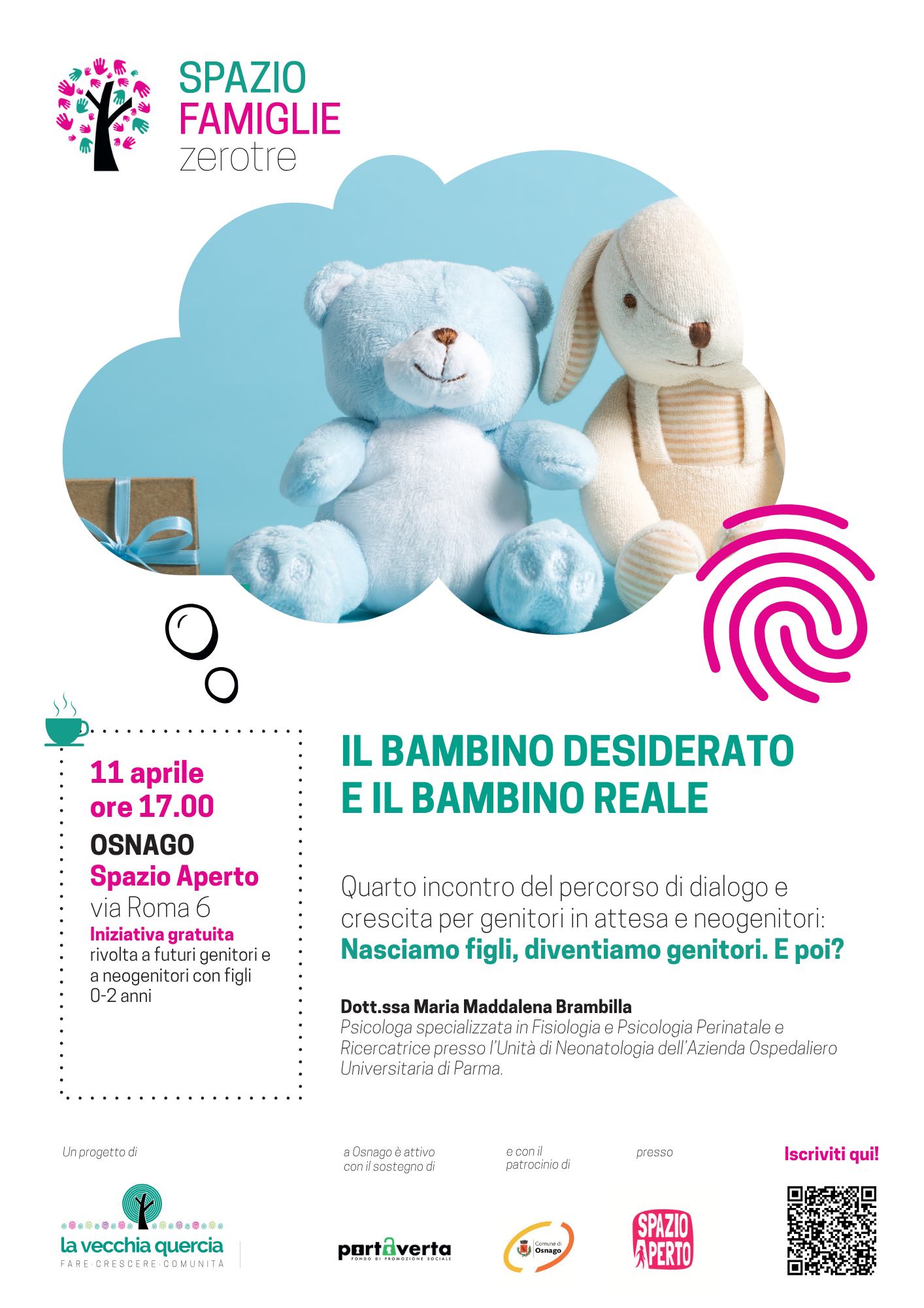 L'appuntamento con la dott.ssa Maria Maddalena Brambilla dal titolo "Il bambino desiderato e il bambino reale" si terrà il prossimo sabato 11 aprile alle ore 17.00 presso Spazio Aperto a Osnago.