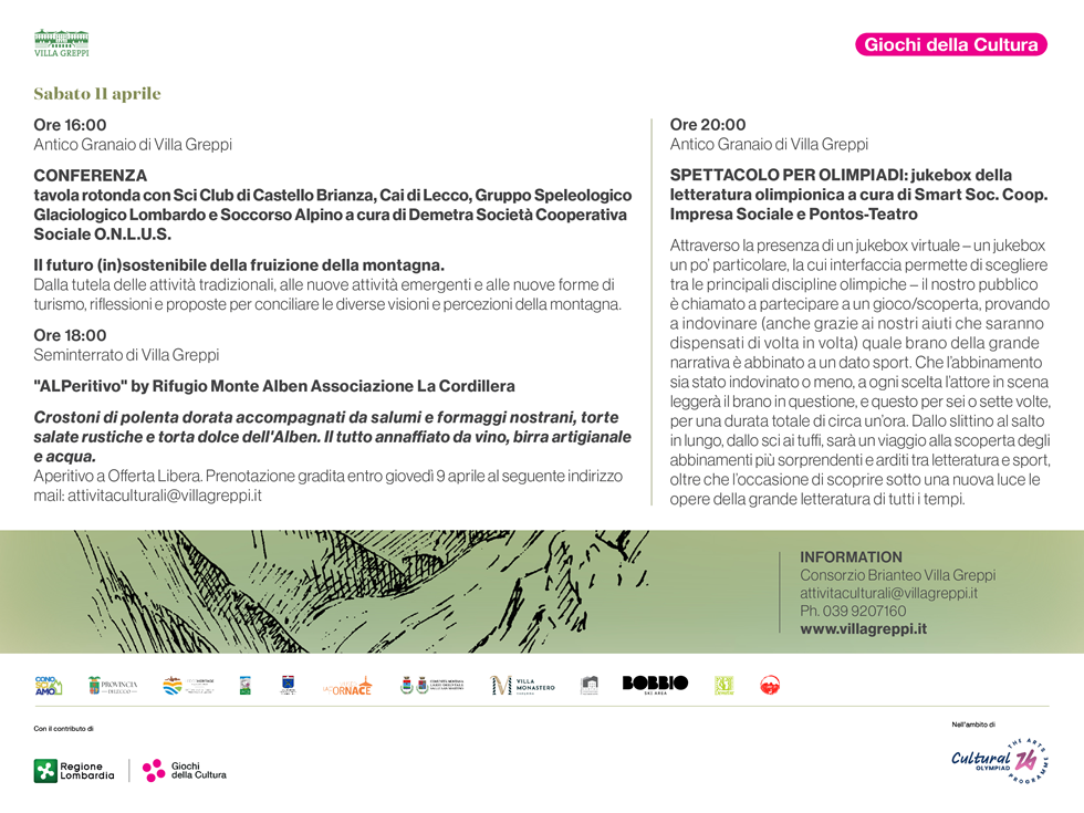 Tutti gli incontri sono a ingresso libero e si tengono a Villa Greppi, Via Monte Grappa 21 | Monticello Brianza (LC).